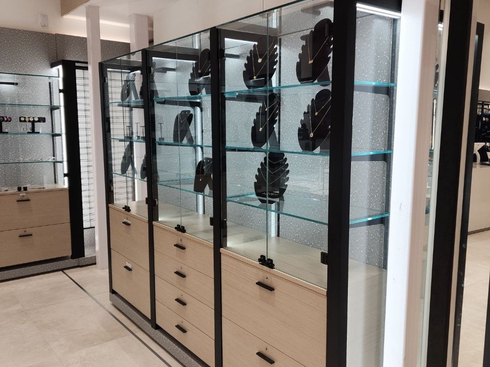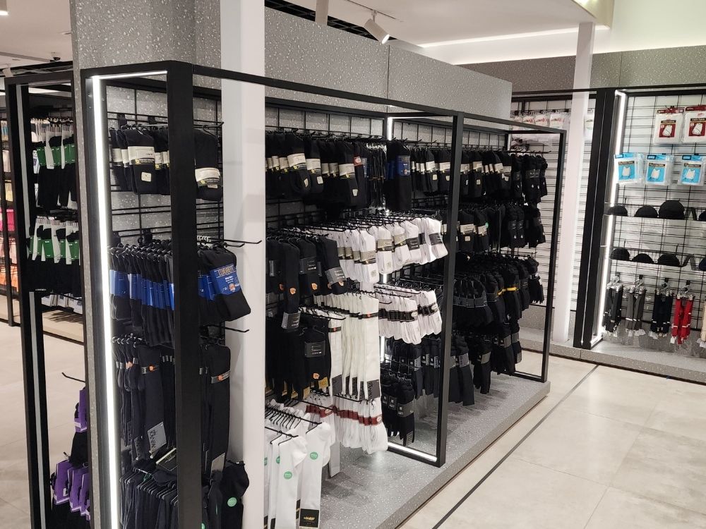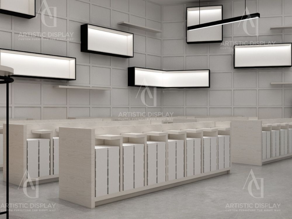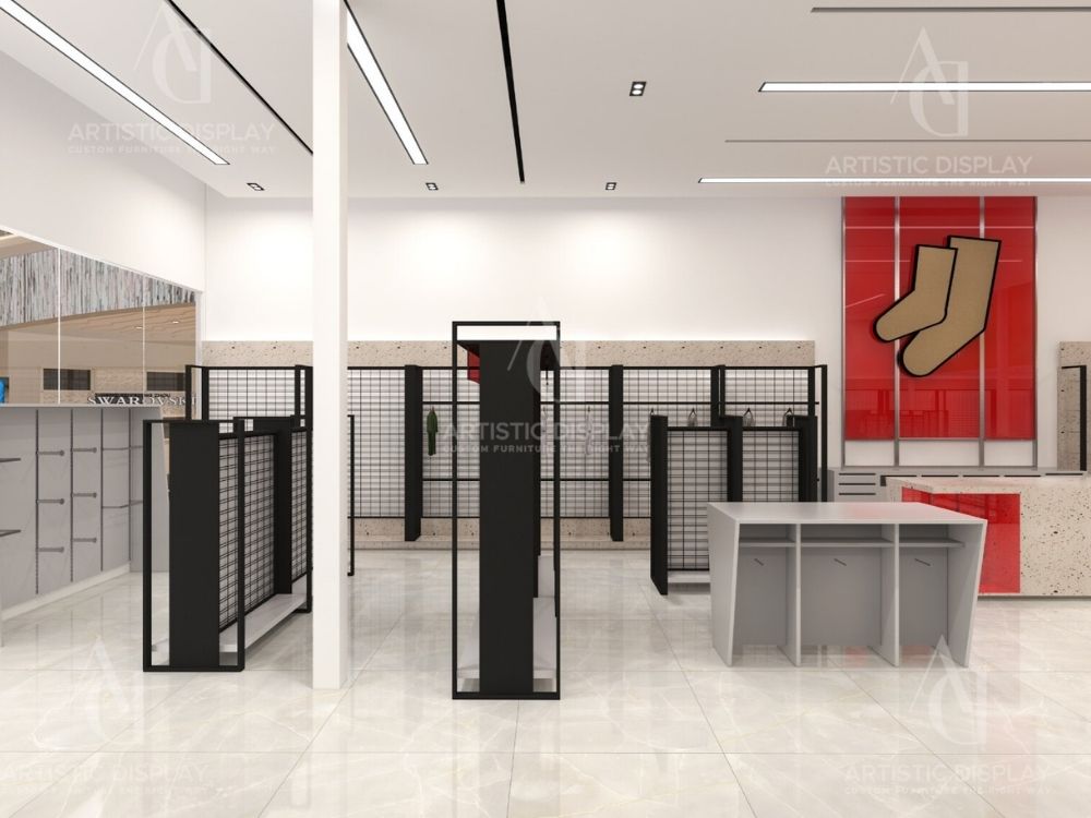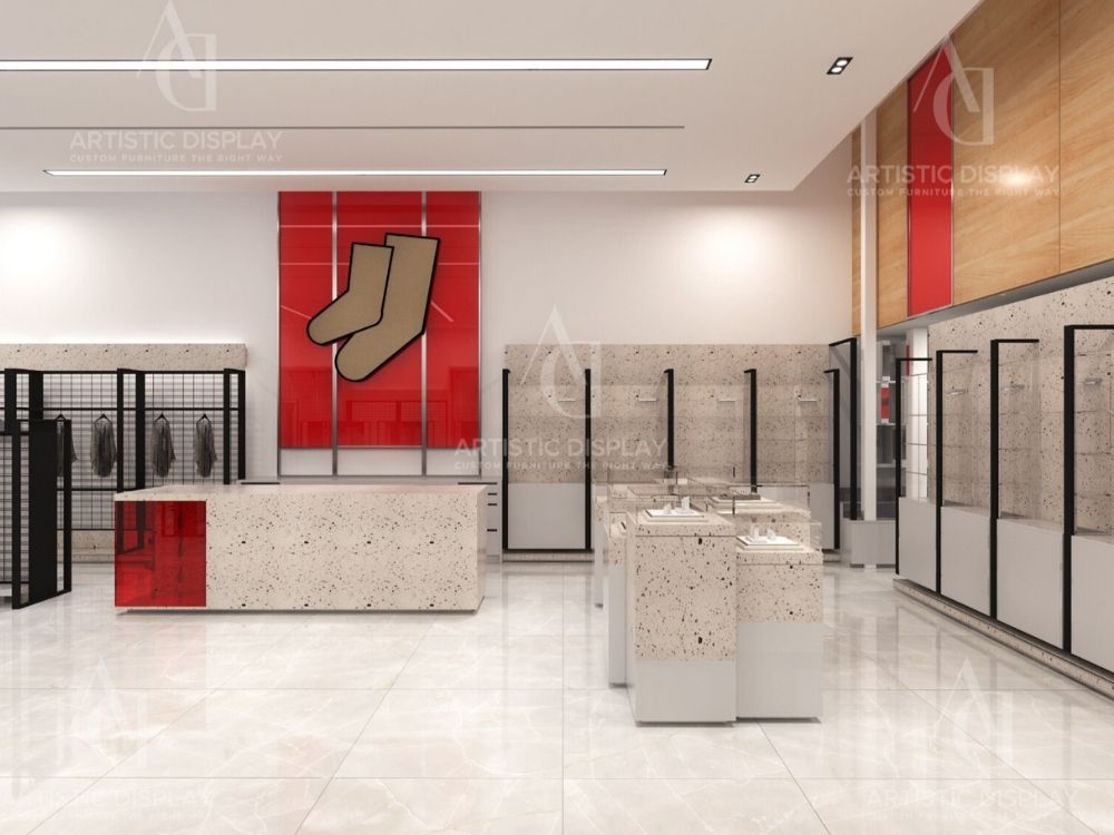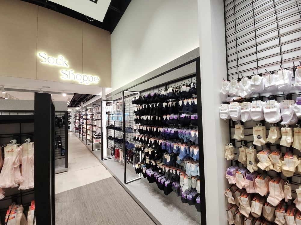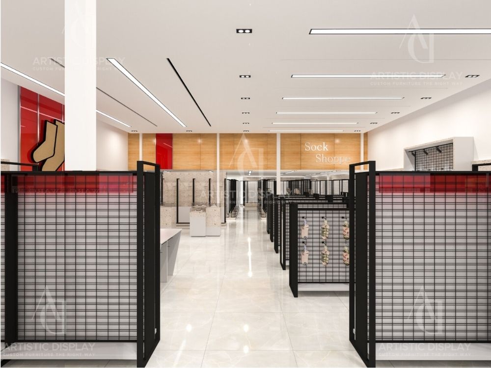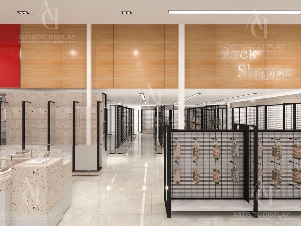With 3 locations in Spring Valley marketplace, Monster and Williamsburg, Sock Shop specializes in hosiery, kids’ apparel, and accessories. We designed and crafted all custom store fixtures, including shelving, jewelry displays, and a reception counter, ensuring a cohesive and functional shopping environment.