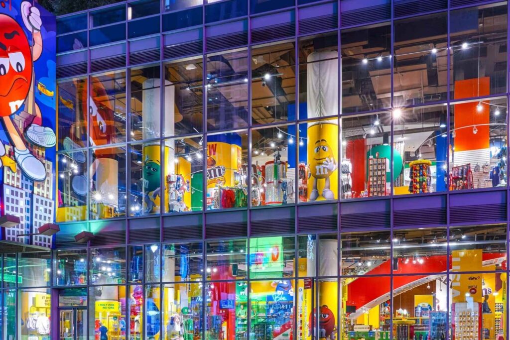 The M&M’s World store in Times Square takes the racetrack concept into a playful, themed environment. The looped layout guides visitors across three floors, ensuring they encounter all merchandise, from personalized candies to collectible items.