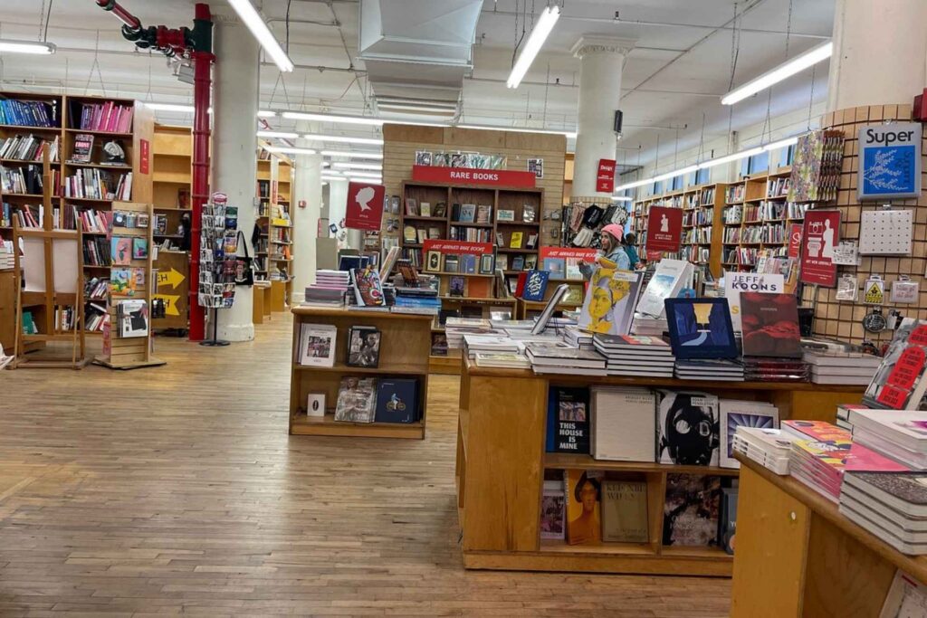 Fashion boutiques, like The Ripped Bodice in Brooklyn, implement spine layouts to showcase their curated collections. The central aisle connects different fashion categories.