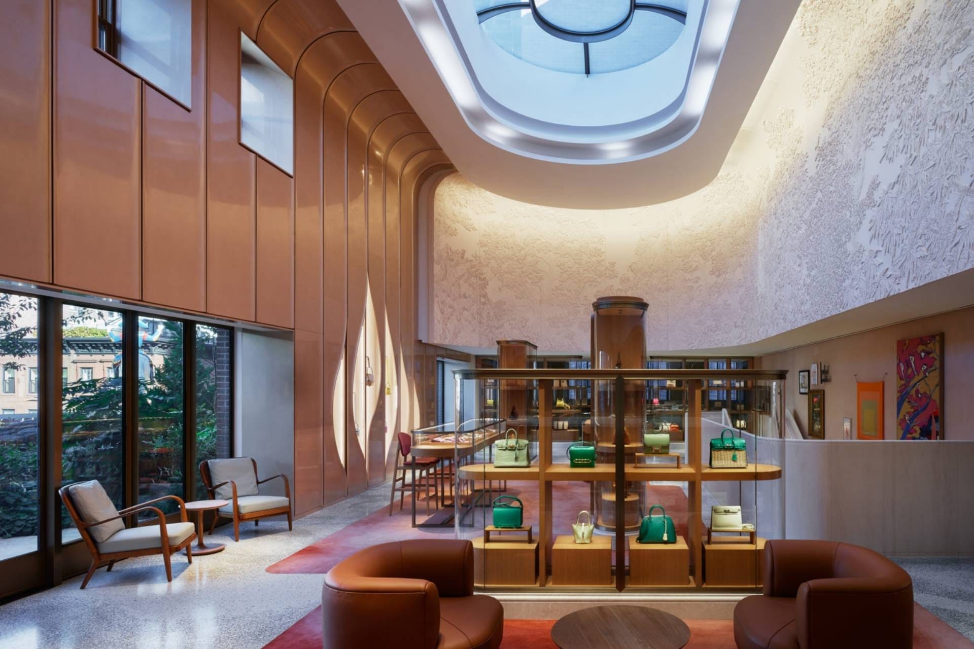 One of the main strengths of an angular store layout is its strong emphasis on visual appeal. The combination of curved pathways, angled displays, and open sightlines allows retailers to create eye-catching focal points and showcase products more effectively. For instance, New York’s Hermès flagship on Madison Avenue incorporates sensuously curved textured walls and open spaces to highlight its luxury goods.